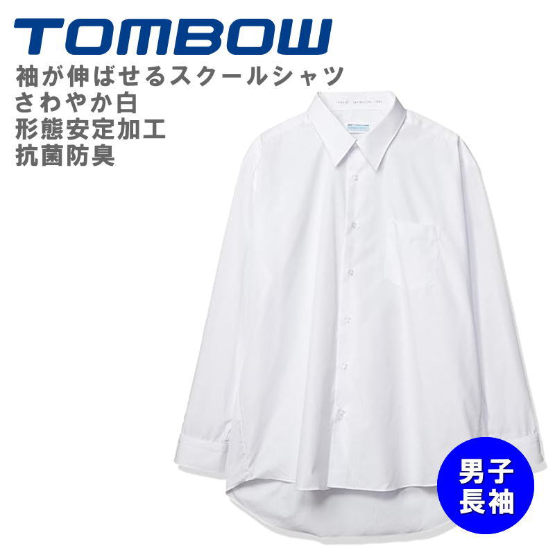 形態安定スクールシャツ 袖が伸ばせる成長仕様 長袖シャツ トンボ学生服 TOMBOW 中学高校制服 長袖 カッターシャツ