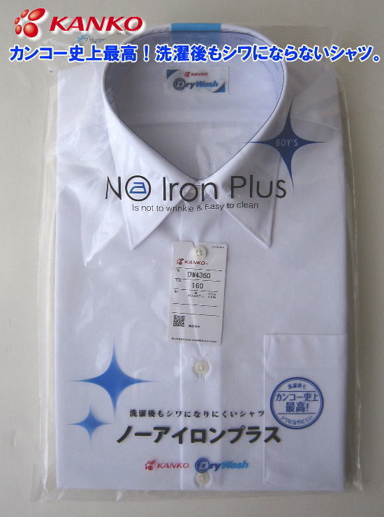 形態安定 男子半袖カッターシャツ ノーアイロンプラス カンコー 半袖スクールシャツ Dry Wash シワになりにくい スクールシャツ A体 制服 180〜190サイズ