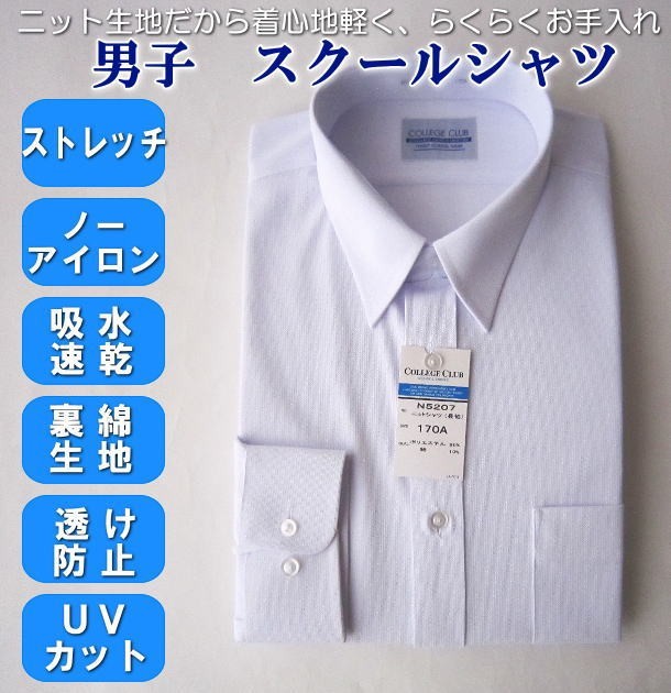 男子スクールシャツ 長袖ニットシャツ ノーアイロン 吸水速乾/制服/ワイシャツ/COLLEGE CLUB/カレッジクラブ
