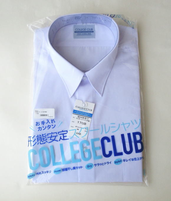 形態安定 抗菌防臭 半袖 男子スクールシャツ ワイシャツ/レギュラーシャツ/A体/制服/白/定番/ノーアイロン/COLLEGE CLUB