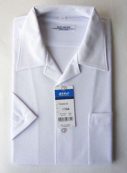 ノーアイロン・ストレッチ クールシャツ 男子ニット開襟シャツ 半袖 富士ヨット ラクシャツ スクールシャツ 制服 学生
