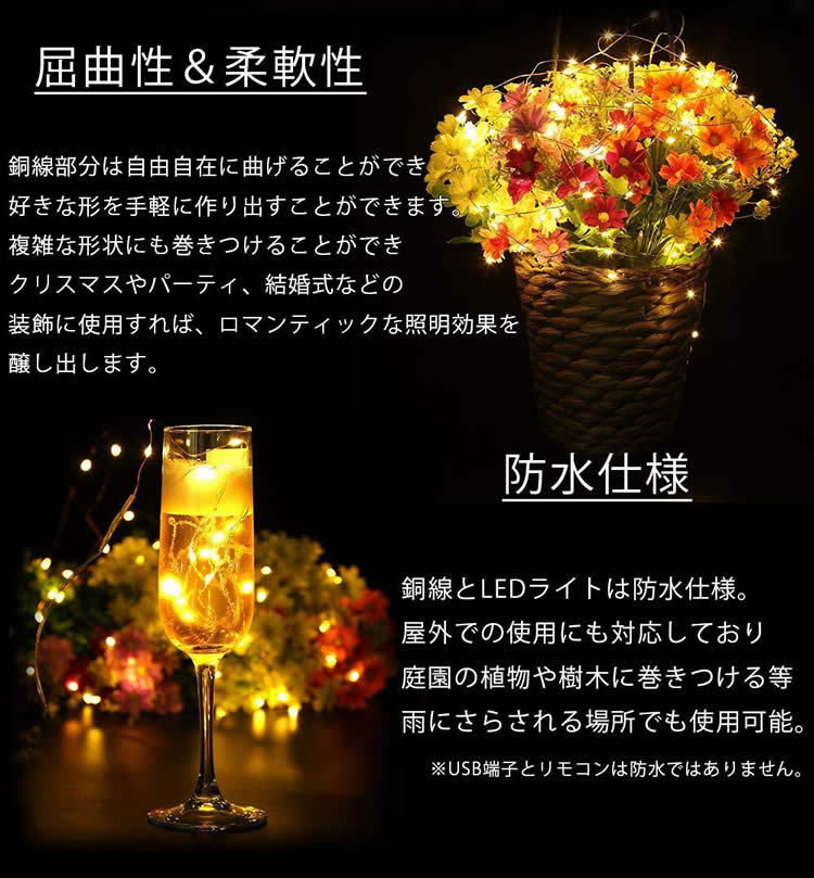 複雑な形状にも巻きつけることができクリスマスやパーティ、結婚式などの装飾に使用すれば、ロマンティックな照明効果を醸し出します。