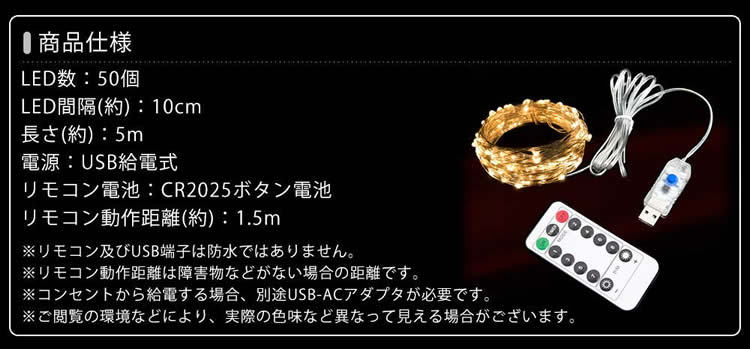 銅線とLEDライトは防水仕様。