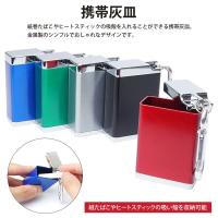 紙巻たばこやヒートスティックの吸殻を入れることができる携帯灰皿。