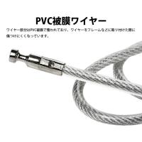 ワイヤー部分はPVC被膜で覆われており、ワイヤーをフレームなどに取り付けた際に傷つけにくくなっています。