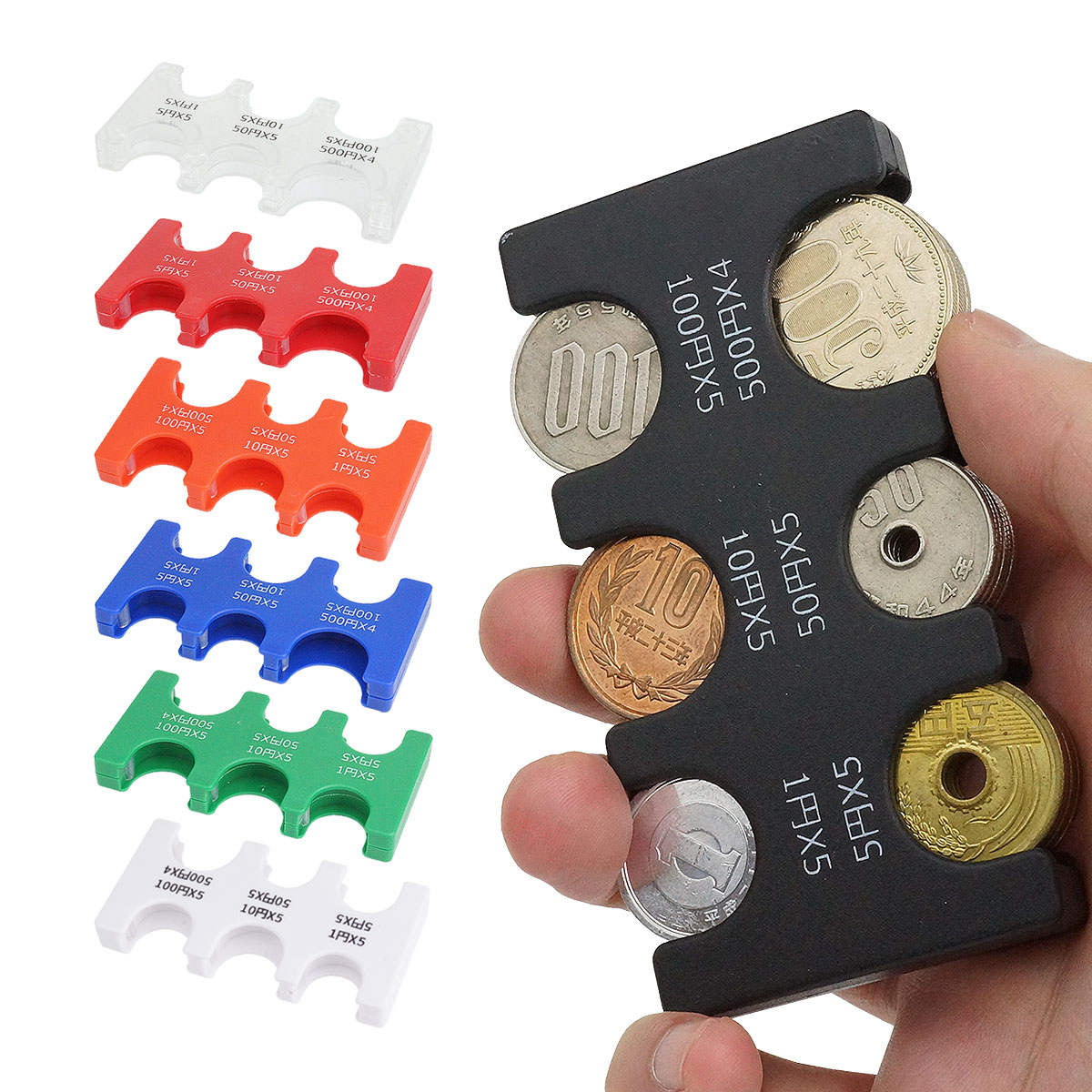収納可能数:1円×5枚、5円×5枚、10円×5枚、50円×5枚、100円×5枚、500円×4枚
