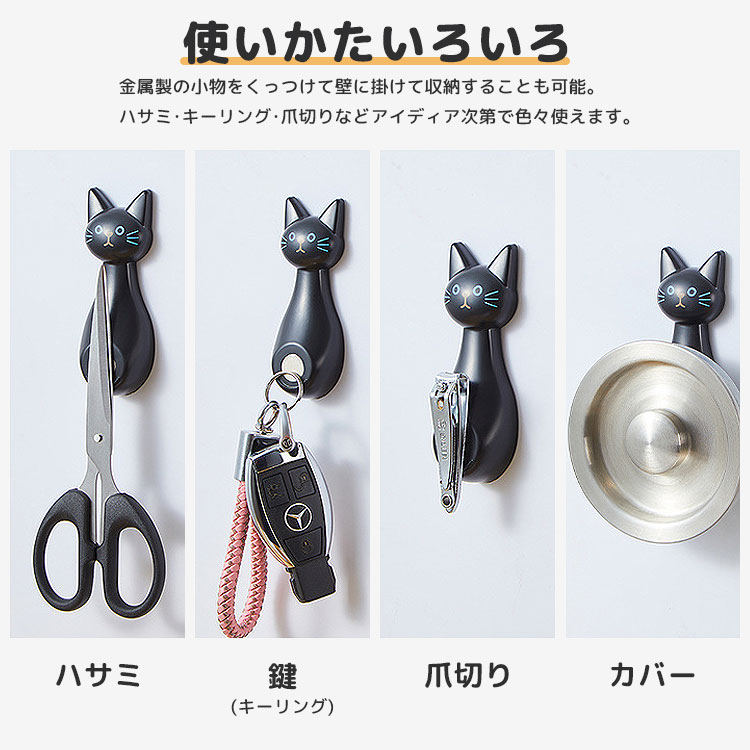 使いかたいろいろ金属製の小物をくっつけて壁に掛けて収納することも可能。ハサミ・キーリング・爪切りなどアイディア次第で色々使えます。