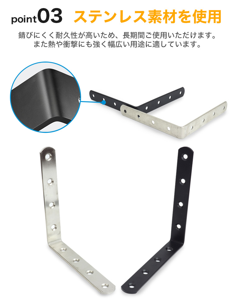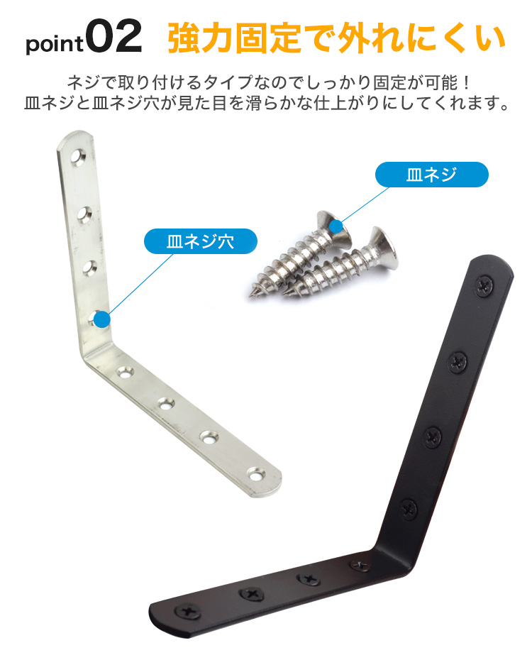 DIYや家具の補強など、様々な用途に使用が可能なL字型金具。