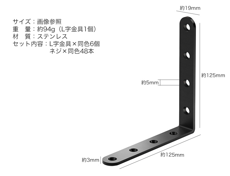 セット内容:L字金具×同色6個、ネジ×同色48本