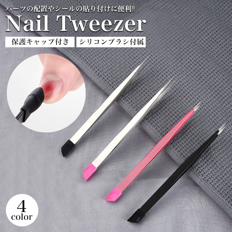 ネイルツイーザー ピンセット キャップ付き 極細 ネイル ジェルネイル デコ シリコンブラシ シリコンプッシャー セルフ パーツ 配置 ネイルアート プチプラ