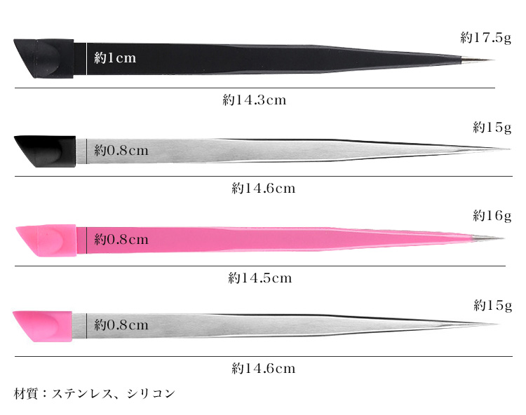 ツイーザー部分はバネが柔らかく、先端が細い仕様で、
