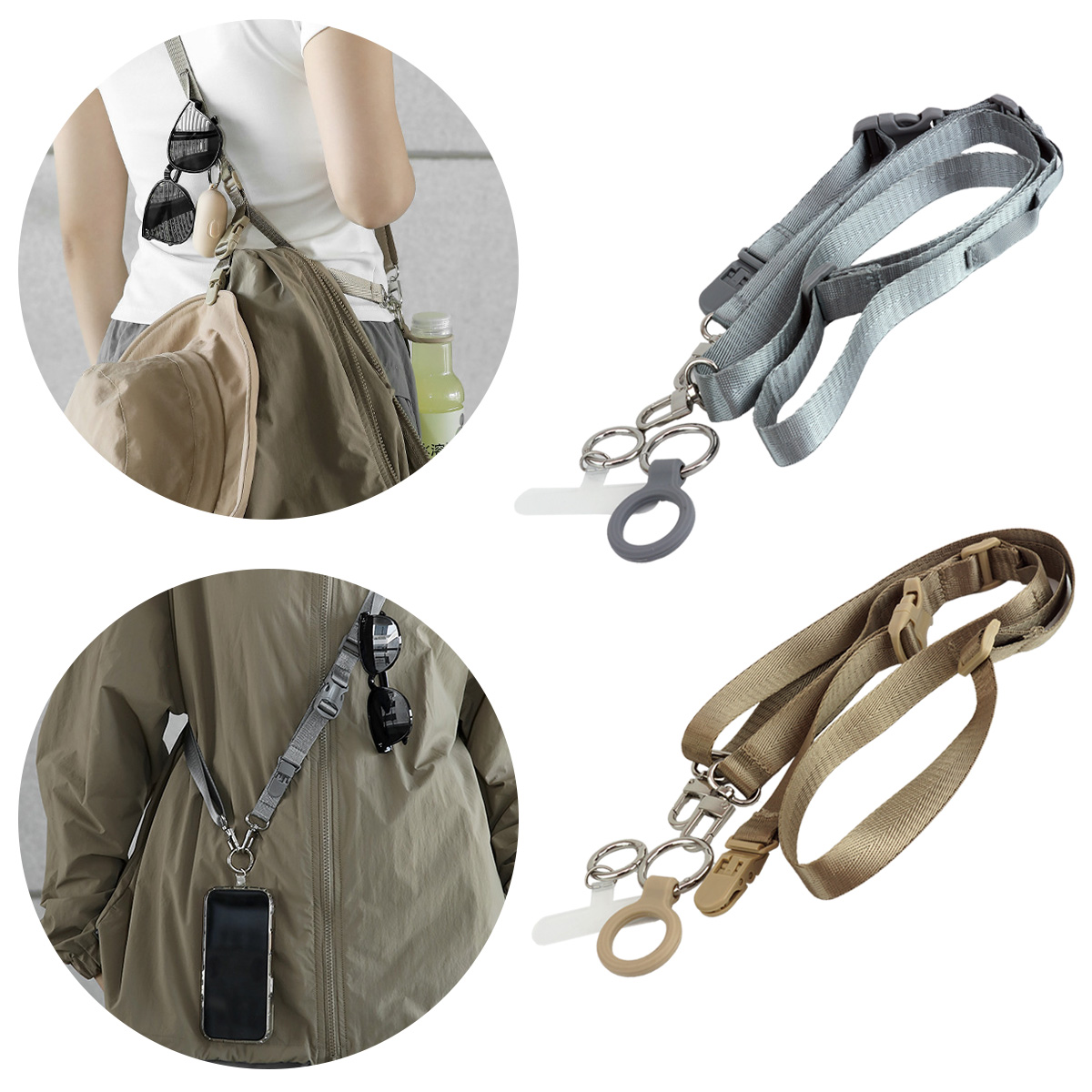 マルチショルダーストラップ 斜め掛け ボディストラップ スマホストラップ スマホホルダー 多機能 ストラップ ペットボトルホルダー ミニクリップ ループ