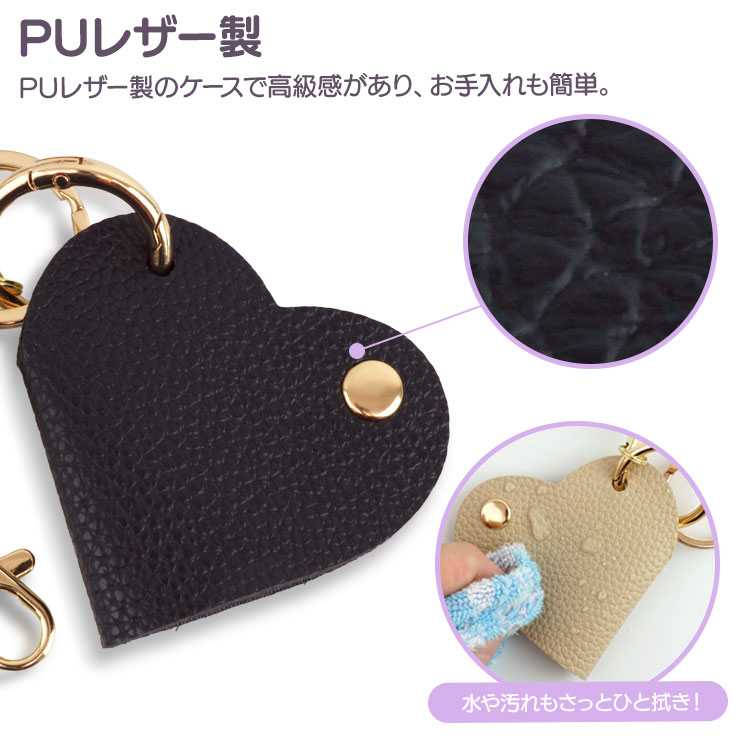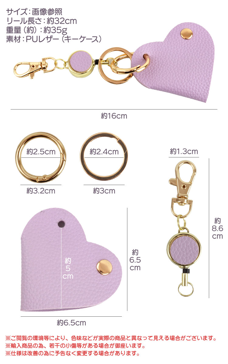 リール付き ハート型キーケース 鍵入れ キーホルダー バッグチャーム ハート チャーム カラビナ ナスカン キーリング PUレザー 鍵 鞄 おしゃれ 高級感 軽量