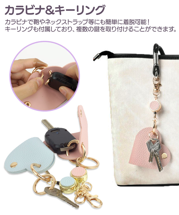 カラビナで鍵やネックストラップ等にも簡単に着脱可能!