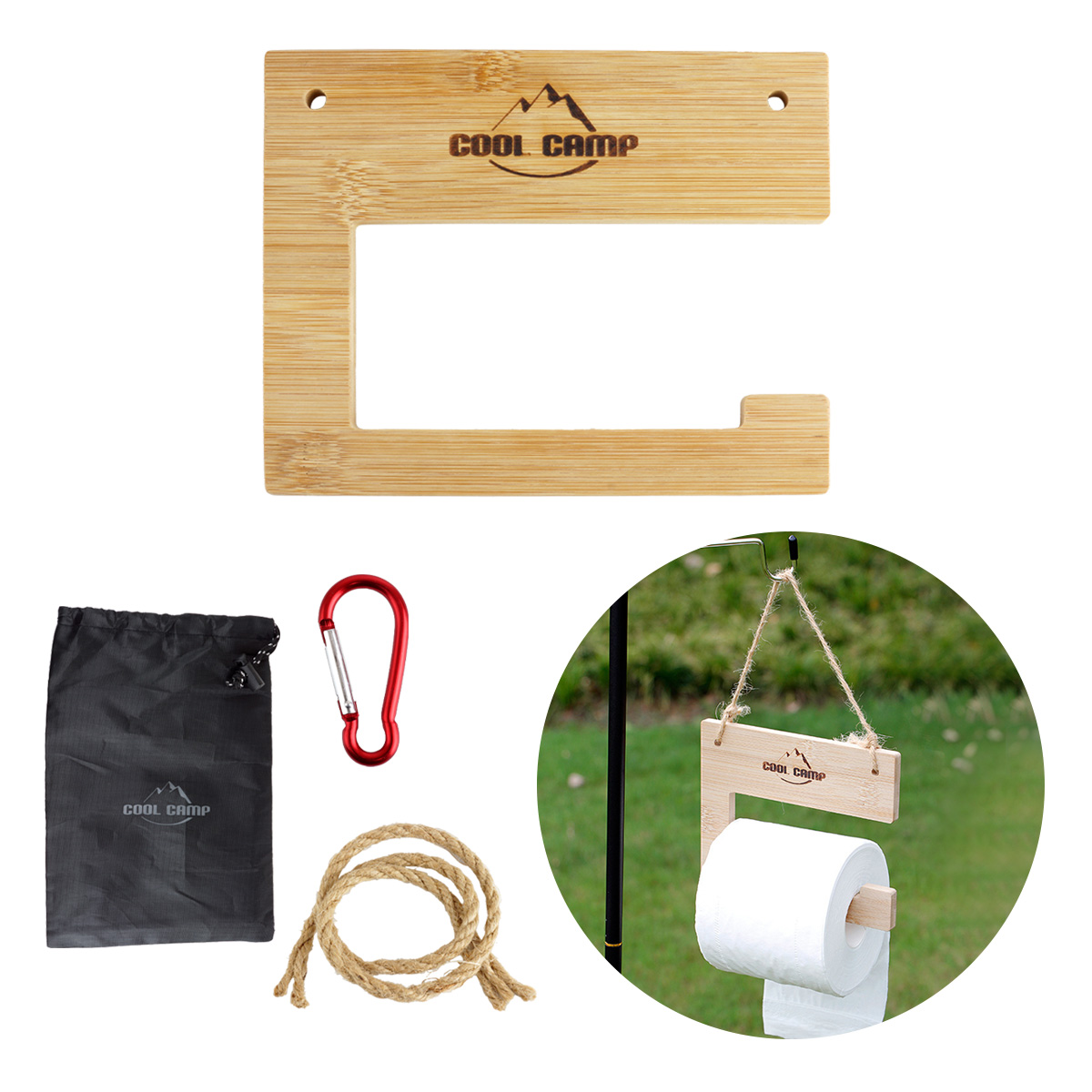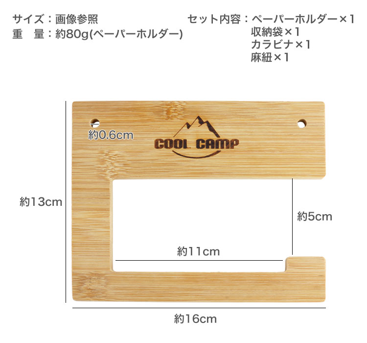 セット内容:ペーパーホルダー×1、収納袋×1、カラビナ×1、麻紐×1