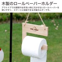 アウトドアでの調理やお手洗い時に欠かせないロールペーパーを使いやすく、スマートに収納できる木製ホルダーです。