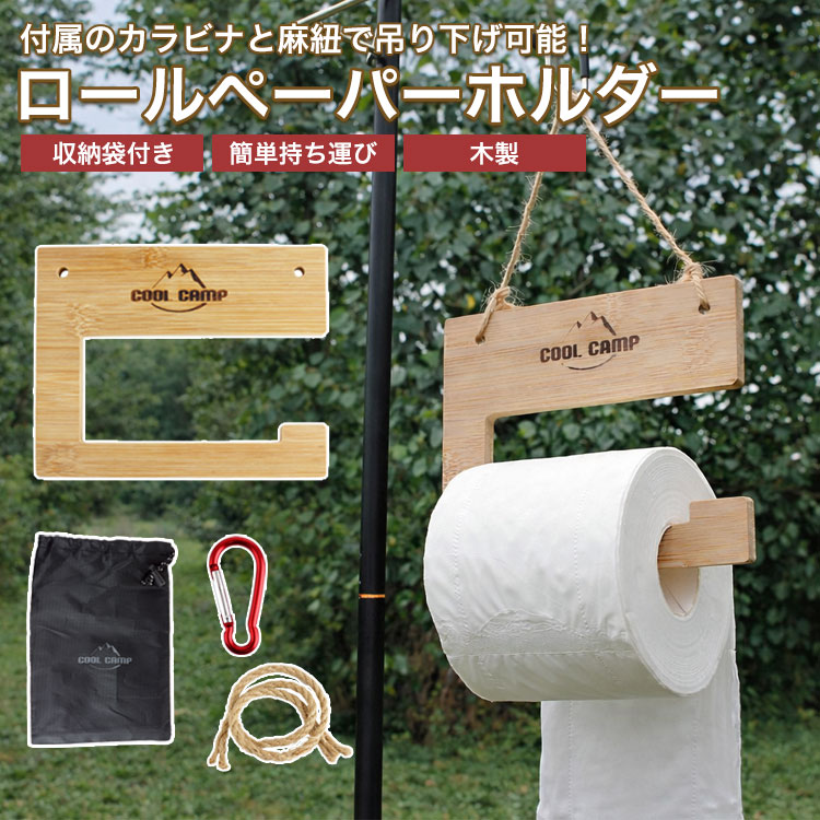 ロールペーパーホルダー 木製 ウッド 吊り下げ 簡単 設置 トイレットペーパー ホルダー カラビナ 麻紐 収納袋 付属 アウトドア キャンプ レジャー 車内 犬 散歩