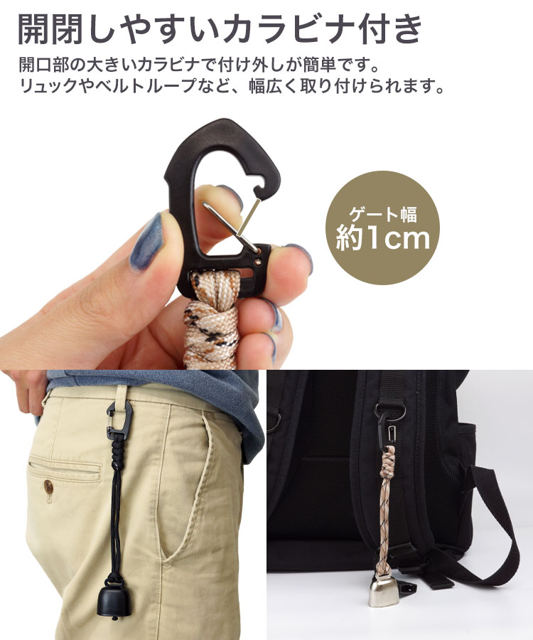 カバンやベルトループなど幅広く取り付けることができます。