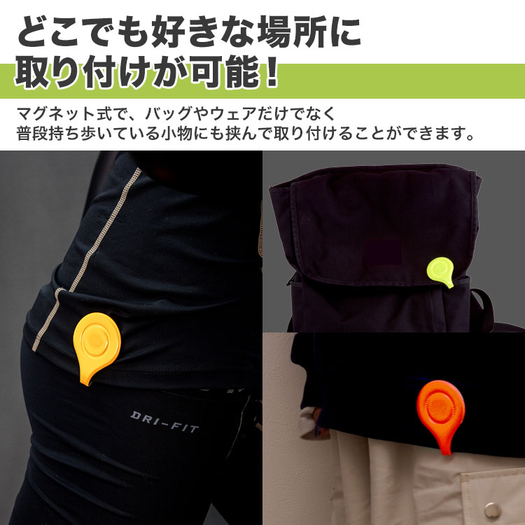マグネット式で、バッグやウェアだけでなく