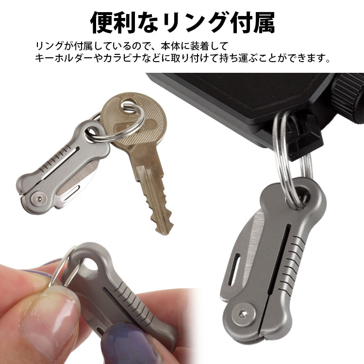 リングを本体に装着してキーホルダーやカラビナなどに取り付けて持ち運ぶことができます。