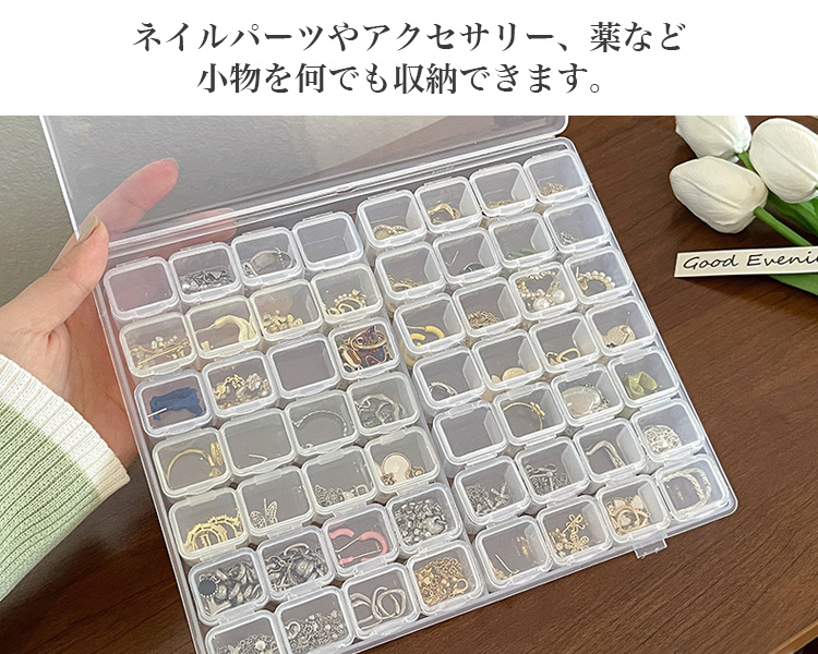 ネイルパーツやアクセサリーなどの小物を収納することができるパーツケース。
