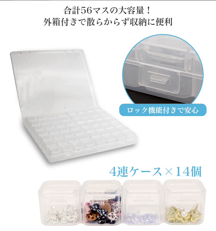 大容量収納が可能な、4連ケース×14個の合計56マス!