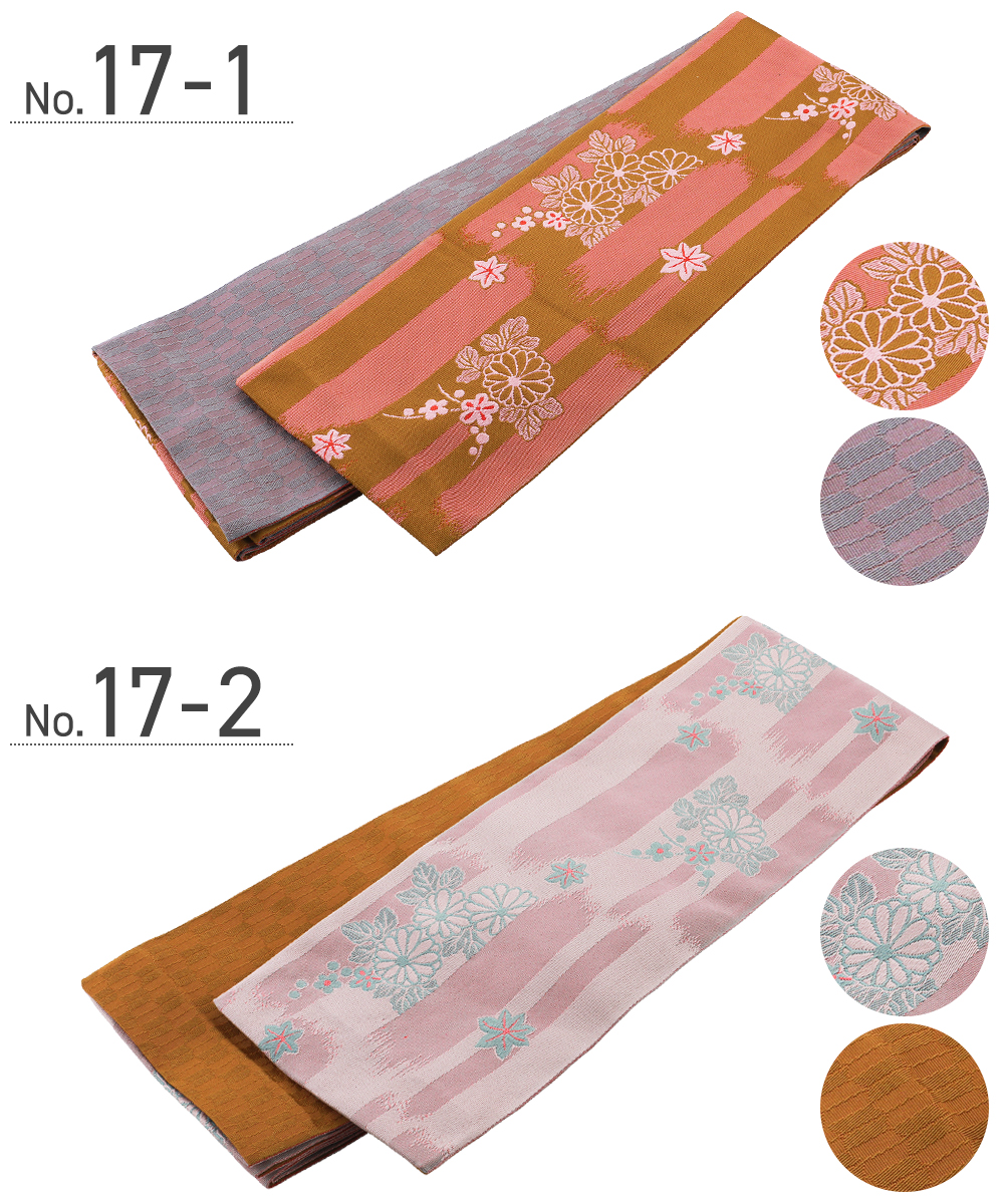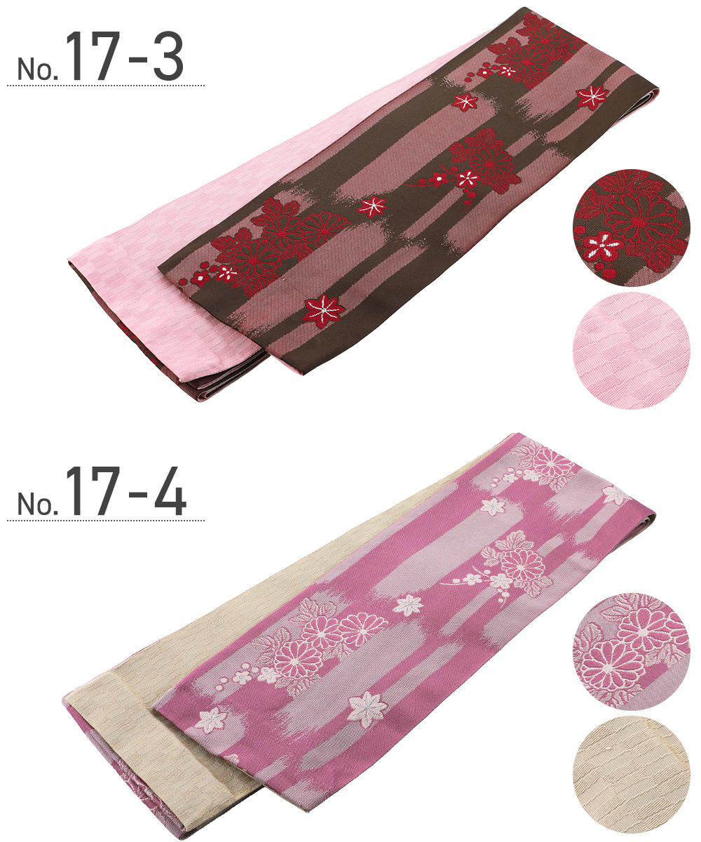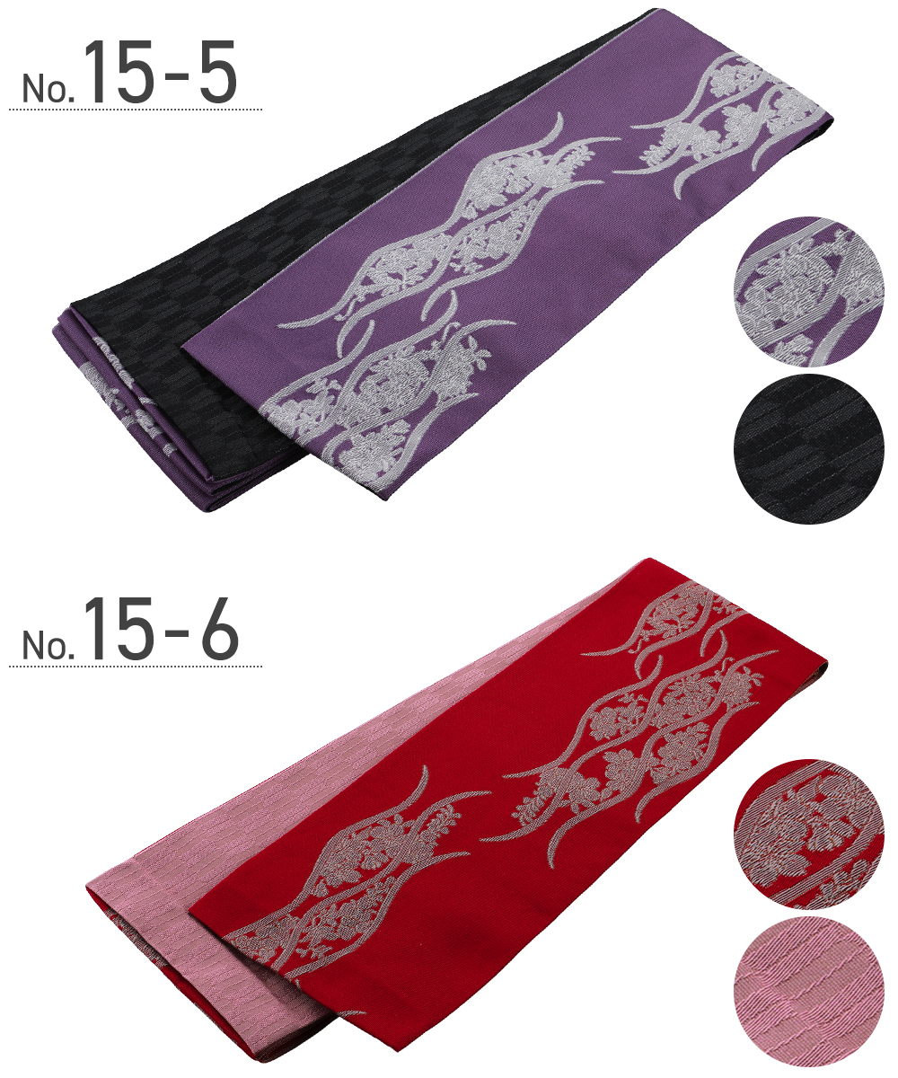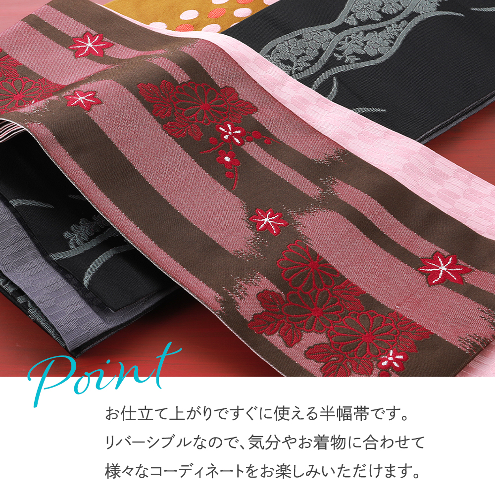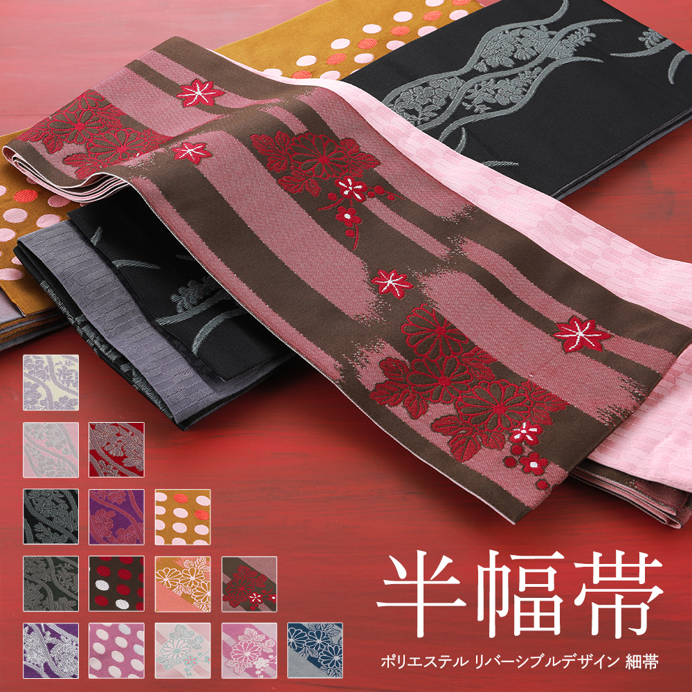 婦人用 半幅帯 リバーシブルデザイン 細帯 小袋帯 半巾帯 ポリエステル 全15柄 ho-145
