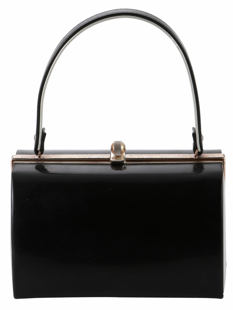 訳あり 振袖用 きものバッグ 和装バッグ ハンドバッグ エナメル ツートン ブラック bb-280-243