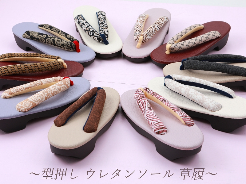 大奉仕 型押し ウレタンソール ソフト鼻緒 草履 F・LLサイズ 全10柄 zh-306