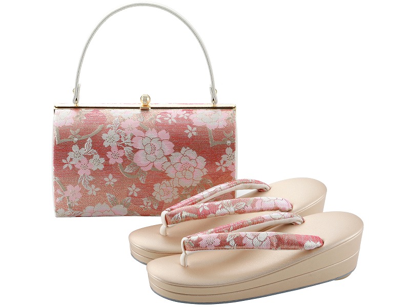 白梅 振袖用 二枚芯 草履バッグセット 薄赤 日本製 bs-360-j