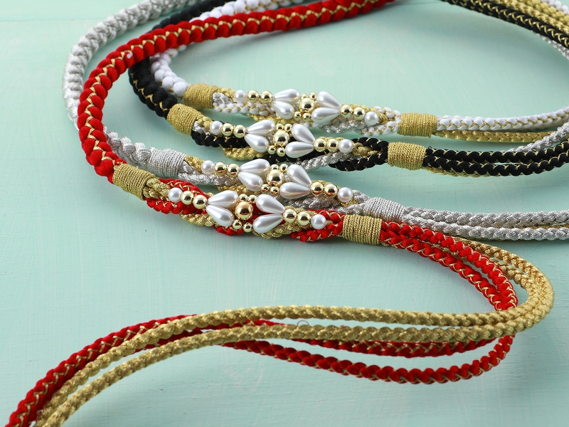 帯締め 帯〆 振袖用 正絹 パール 飾り付き 手組 飾り紐 全6色 hs-389