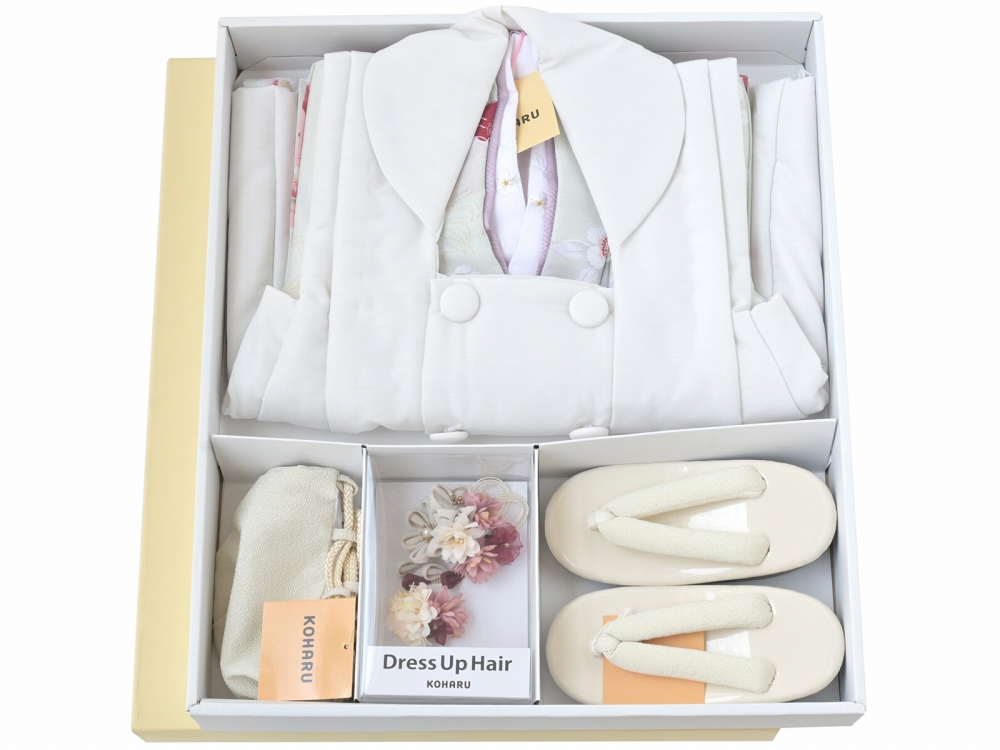 七五三 KOHARU 被布コートセット 3歳 女の子 着物 8点セット 箱入り 薄緑 kh-1-A