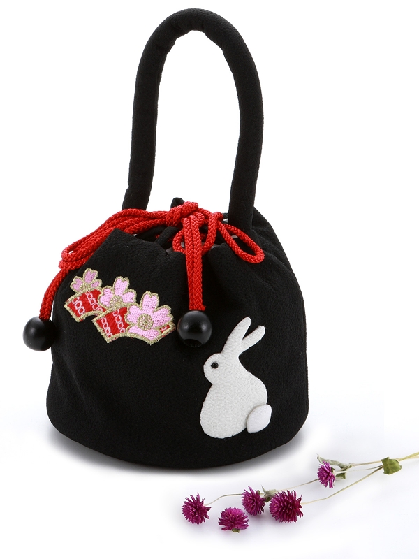 七五三 こども用 わらべくらぶ ちりめん素材 巾着 ハンドバッグ うさぎ ブラック sb-31-d