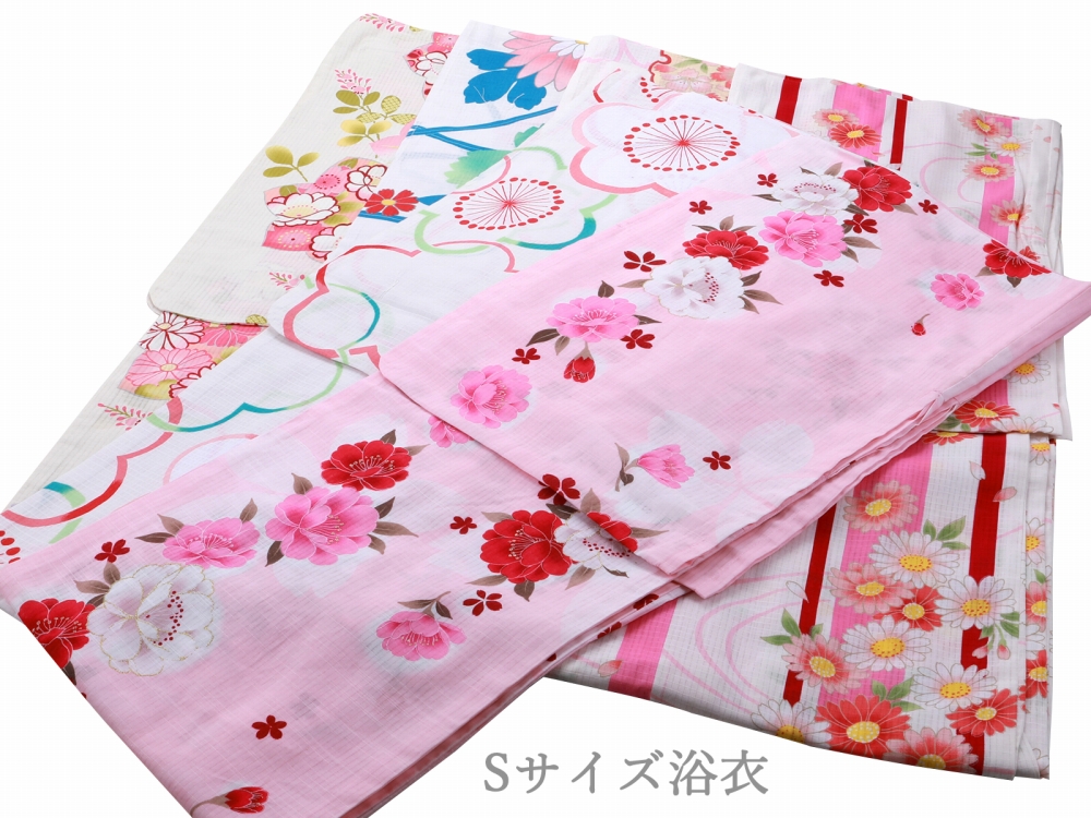 女性用 浴衣 お仕立て上がり 紅梅織り 綿100% 単品 Sサイズ 白・ピンク系 全6柄 ta-330