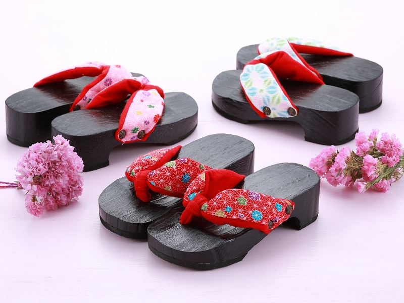お子様用 女の子 サンダル 桐下駄 ソフト鼻緒 かかと高 下駄 全3柄 kg-40 18.0cm対応