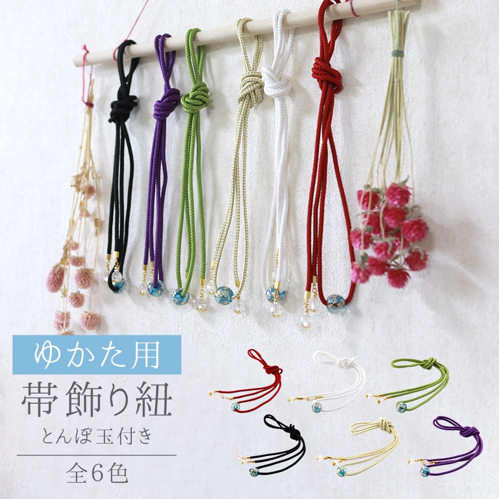 トンボ玉付き 浴衣用 帯締め 帯飾り 6色 ok-24 1口6点まで ゆうメール可