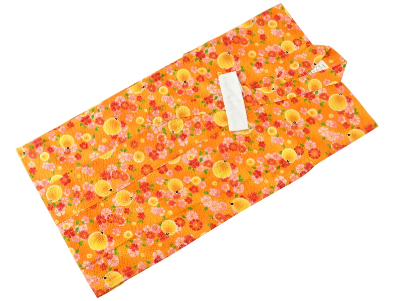 浴衣 子供用 ふんわり リップル生地 ゆかた 80サイズ 橙に蛍と花 k-201-3