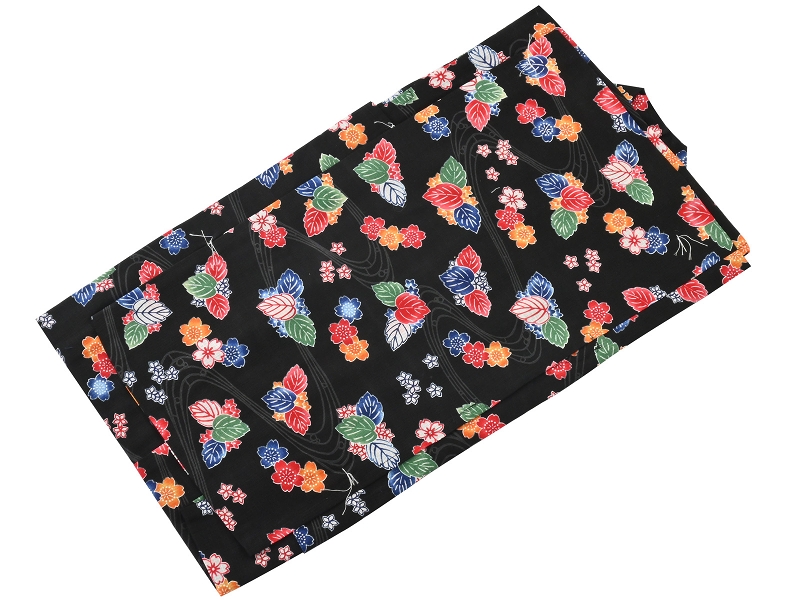 90・100・110cmサイズ 子供 ゆかた 綿素材 仕立て上がり浴衣 紅梅織り 黒地に花 k-201-10