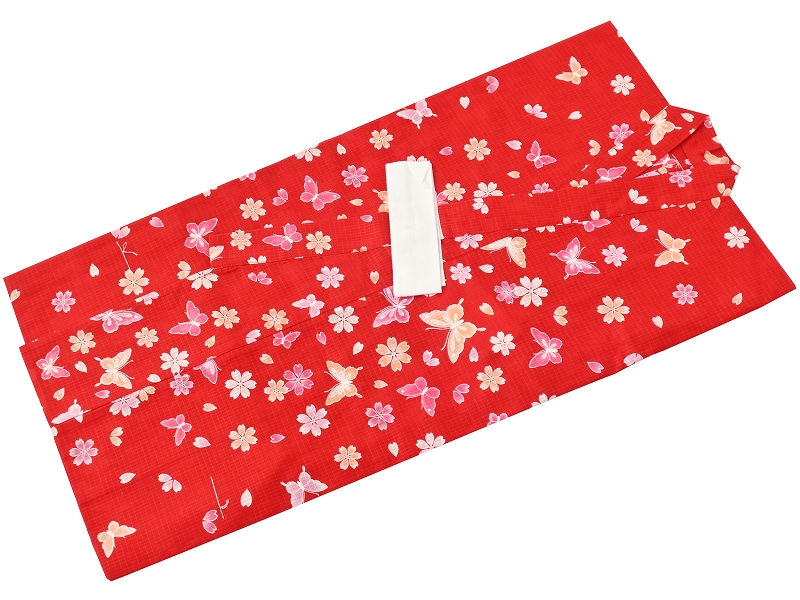 紅梅織生地のお仕立て上がり浴衣
