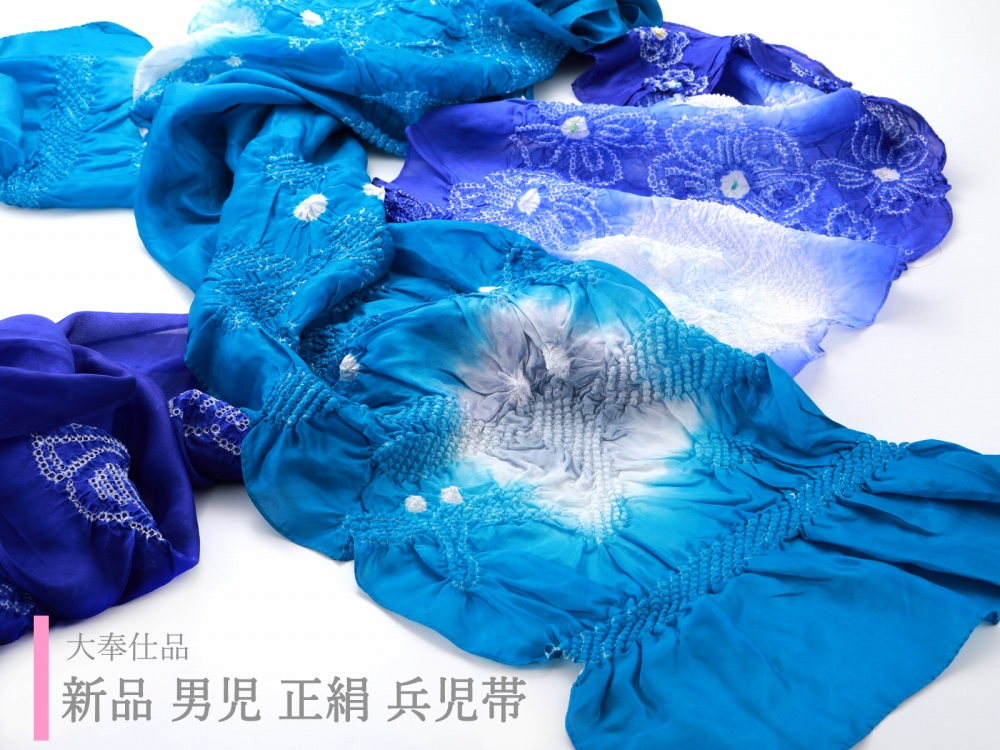 お子様用 正絹 絞り 兵児帯 子ども用 へこ帯 紺 青緑 紫 色おまかせ od-25