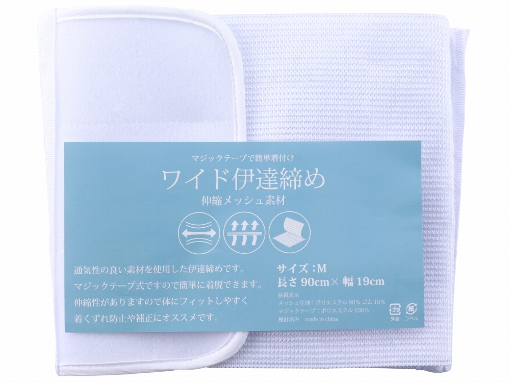 ワイド メッシュ マジックベルト ワイド 伊達締め ホワイト 伸縮 M・Lサイズ ds-86