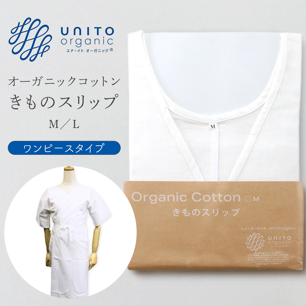 婦人用 ユナ・イト オーガニックコットン ダブルガーゼ きものスリップ ワンピースタイプ M・Lサイズ hs-199