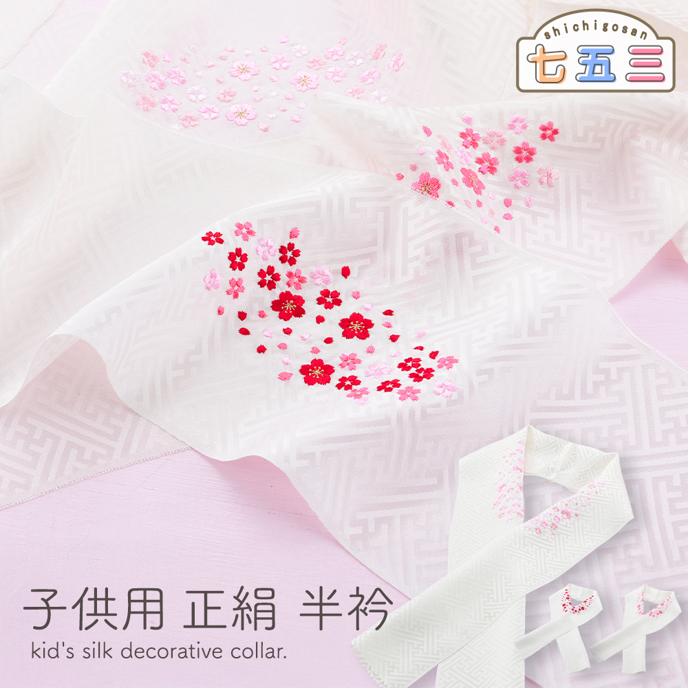 七五三 お子様用 半衿 女の子用 正絹生地 桜刺繍 半襟