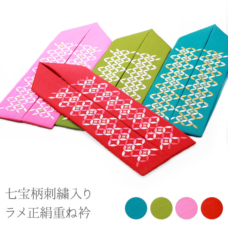 七宝柄の刺繍をあしらった、正絹の重ね衿です。