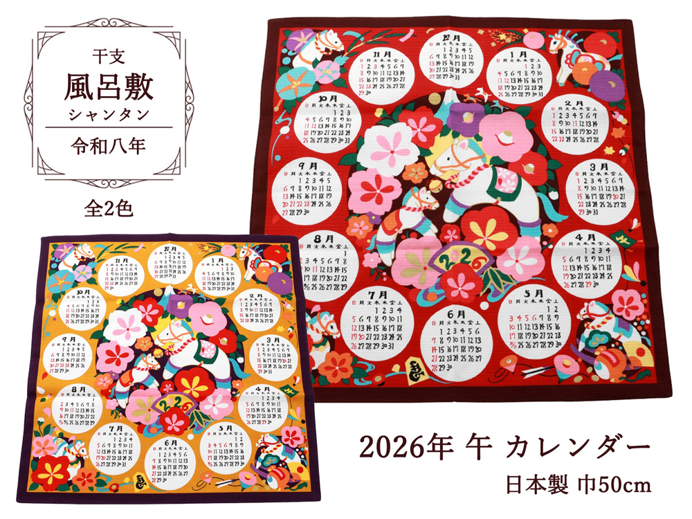 2026年(令和8年)の干支カレンダー風呂敷です。