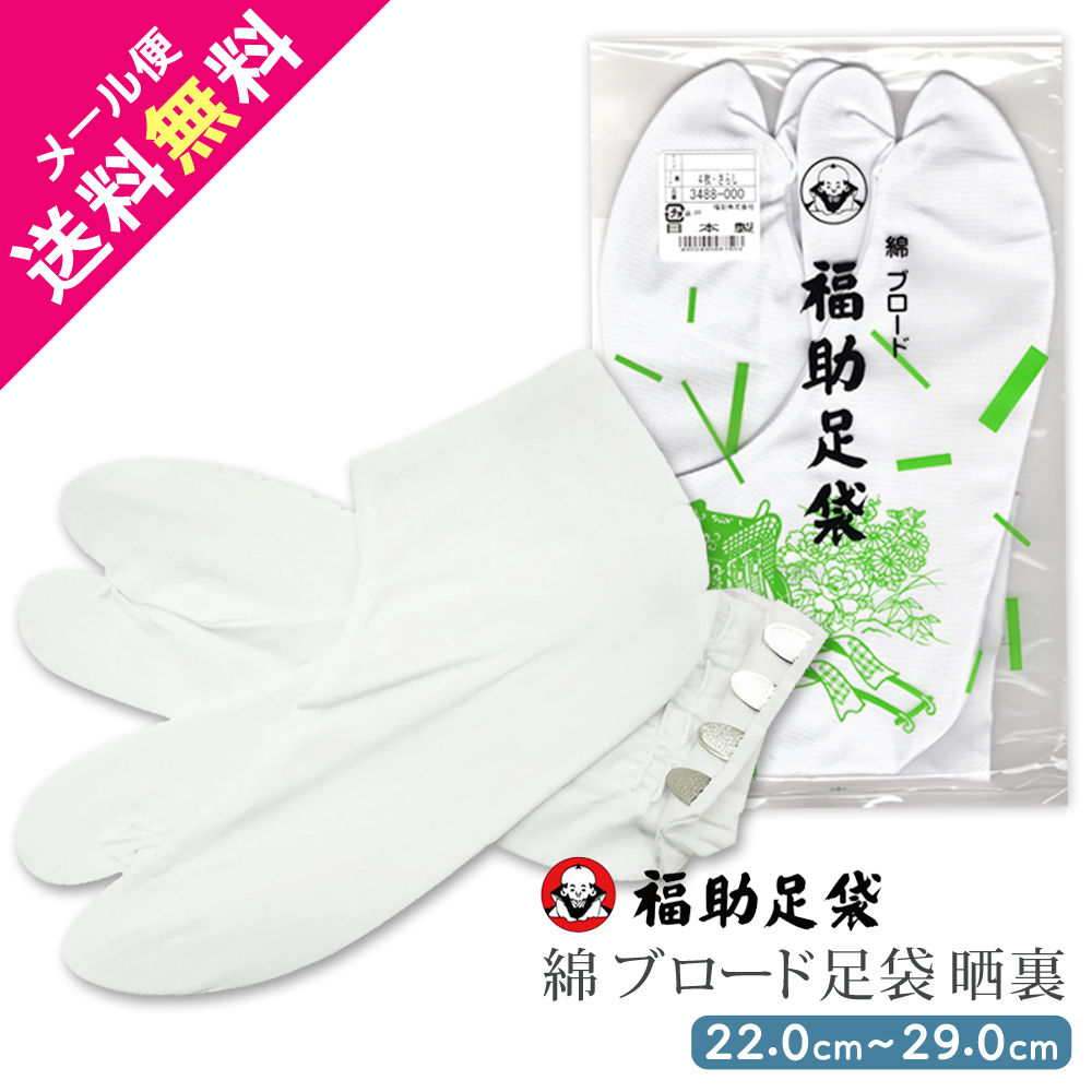 メール便送料無料 綿100% 福助足袋 白足袋 国産 ブロード 4枚こはぜ 綿素材 さらし裏 22.0から29.0cm 3488