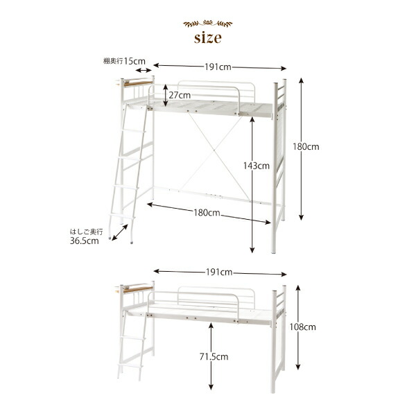 コンパクトロフトベッド ベッドフレームのみ シングル ショート丈 組立設置付