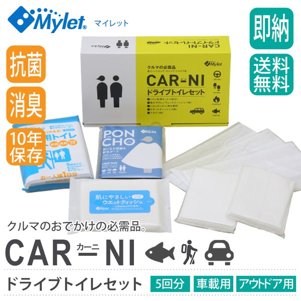 CAR-NI(カーニ)簡易トイレ 防災用品 マイレット ポウェットティッシュ、トイレセット、ポンチョ、マスク、ティッシュの5品入り 爆買