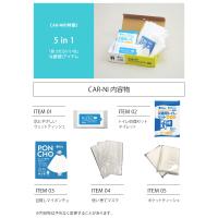 5in1。ひと箱に車の必需品、ウェットティッシュ、トイレセット、ポンチョ、マスク、ティッシュの5品をセットにしました。