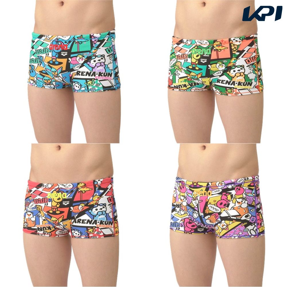 トレーニングカテゴリー「TOUGHSUITシリーズ」。大会に向けて練習を重ねる頻度が高いスイマーにオススメの練習用水着。環境に配慮したリサイクルポリエステル素材「タフスキンEP」を使用し塩素に強く長持ち。全てのスイマーに人気のアリーナくんの総柄ショートレッグタイプ水着。アリーナくんと仲間たちをカラフルに4配色で表現。*前身頃、後身頃に黒の裏地付き。*この商品は縫製上、一点一点プリント柄の見え方に違いが生じますので予めご了承ください。